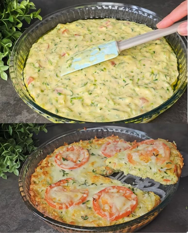 Odaberite odgovarajuću posudu za pečenje, poput tanjira za pitu ili slične vatrostalne posude, i namastite je maslinovim uljem. Sipajte smjesu od tikvica u posudu i ravnomjerno je rasporedite. Na vrhu smjese pažljivo poređajte kriške paradajza. Ovaj korak ne samo da dodaje vizuelnu privlačnost, već i doprinosi sočnosti pite. Za dodatni ukus, obilno pospite isjeckanim mocarela sirom i majčinom dušicom, što će donijeti savršen sklad okusa.Pekanje i posluživanje