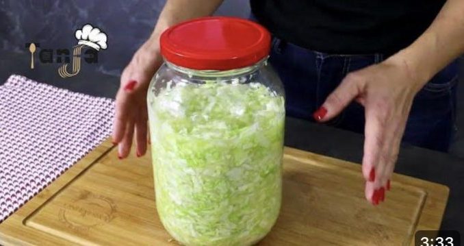 - Nakon tog perioda, kiseli kupus premjestite u sterilizirane tegle, pritiskajući ga kako bi ispustio višak zraka.