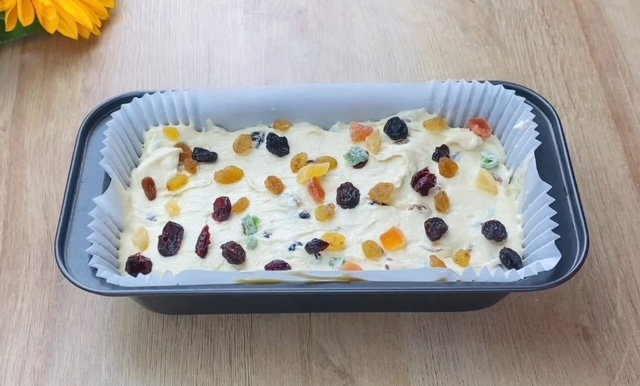 Nakon toga, prosijajte brašno pomiješano s praškom za pecivo i dodajte ga smjesi. Miješajte oko 15 minuta dok ne dobijete glatku i ujednačenu smjesu. Na kraju, umiješajte suho voće i orašaste plodove, što će kolaču dati dodatnu teksturu i okus. Preporučljivo je prethodno nasjeckati orahe na krupnije komade kako bi se osjetila njihova hrskavost. Smjesu sipajte u prethodno obložen kalup i pecite u prethodno zagrijanoj rerni na 170°C 40-45 minuta, ili dok čačkalica ne izađe suha.