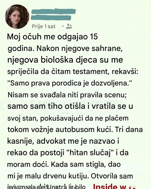Gubitak voljene osobe je jedan od najtežih trenutaka u životu svakog pojedinca. Ovaj osjećaj tuge može biti još intenzivniji kada se u isto vrijeme suočavamo s porodičnim konfliktima i neočekivanim obratima. Moja priča započinje na dan kada sam izgubila Roberta — čovjeka koji me je odgajao i s kojim sam dijelila posebnu vezu, iako nismo bili povezani krvlju. Njegova smrt i ono što se desilo prilikom čitanja testamenta promijenilo je moj život na načine koje nisam mogla predvidjeti. Ova situacija nije samo priča o gubitku, već i o kompleksnosti porodičnih odnosa koji se često otkrivaju u trenucima krize.