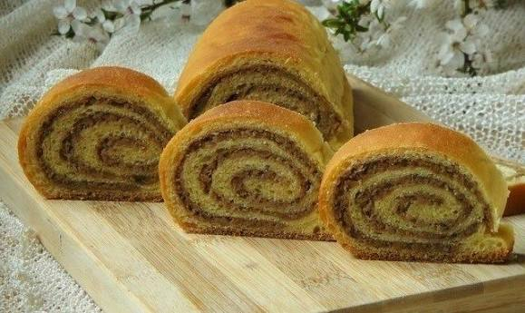 Kada se tijesto odmorilo, podijelite ga na tri jednaka dijela. Na pobrašnjenoj podlozi, svaki dio razvaljajte na veličinu otprilike 35×30 cm. Svaki razvaljani dio tijesta premažite trećinom pripremljenog nadjeva i pažljivo savijte u roladu dužine 35 cm. Rolade stavite u lim za pečenje obložen papirom za pečenje, a zatim ih premažite otopljenim maslacem. Ovaj korak dodaje dodatnu sočnost i hrskavost kolaču. Pecite orahnjače u prethodno zagrijanoj pećnici na temperaturi od 200 °C otprilike 25 minuta ili dok ne dobiju zlatno-smeđu boju.