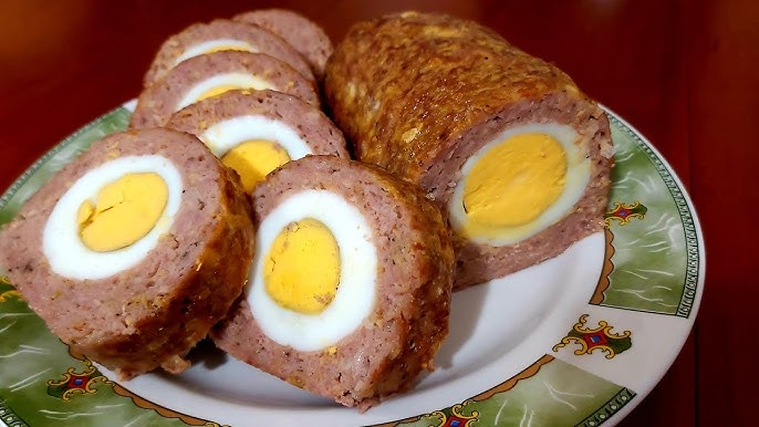 3. Oblikovanje rolata: Na papir za pečenje ravnomerno razmažite mesnu smesu, pazeći da ostavite dovoljno prostora sa svih strana za uvijanje. U posebnoj posudi, umutite preostalo jaje i kiselu pavlaku, a zatim premažite polovinu ove smese po mesu. Na sredinu stavite obarena jaja i pažljivo urolajte meso oko njih, formirajući rolat. Potrudite se da dobro zatvorite krajeve kako bi se nadjev zadržao unutar rolata tokom pečenja.